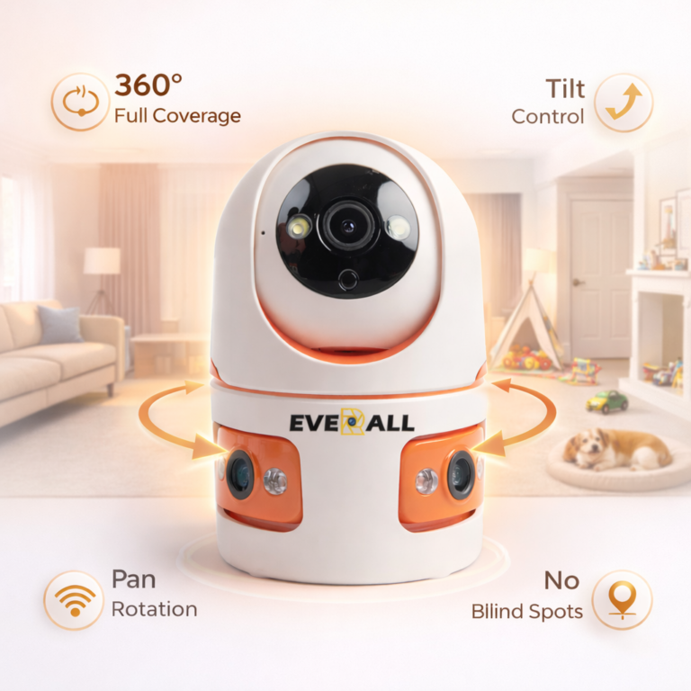 Everall Mini PT Dual Lens 4MP Wi-Fi CCTV Camera (360° Rotation, Night Color Vision)