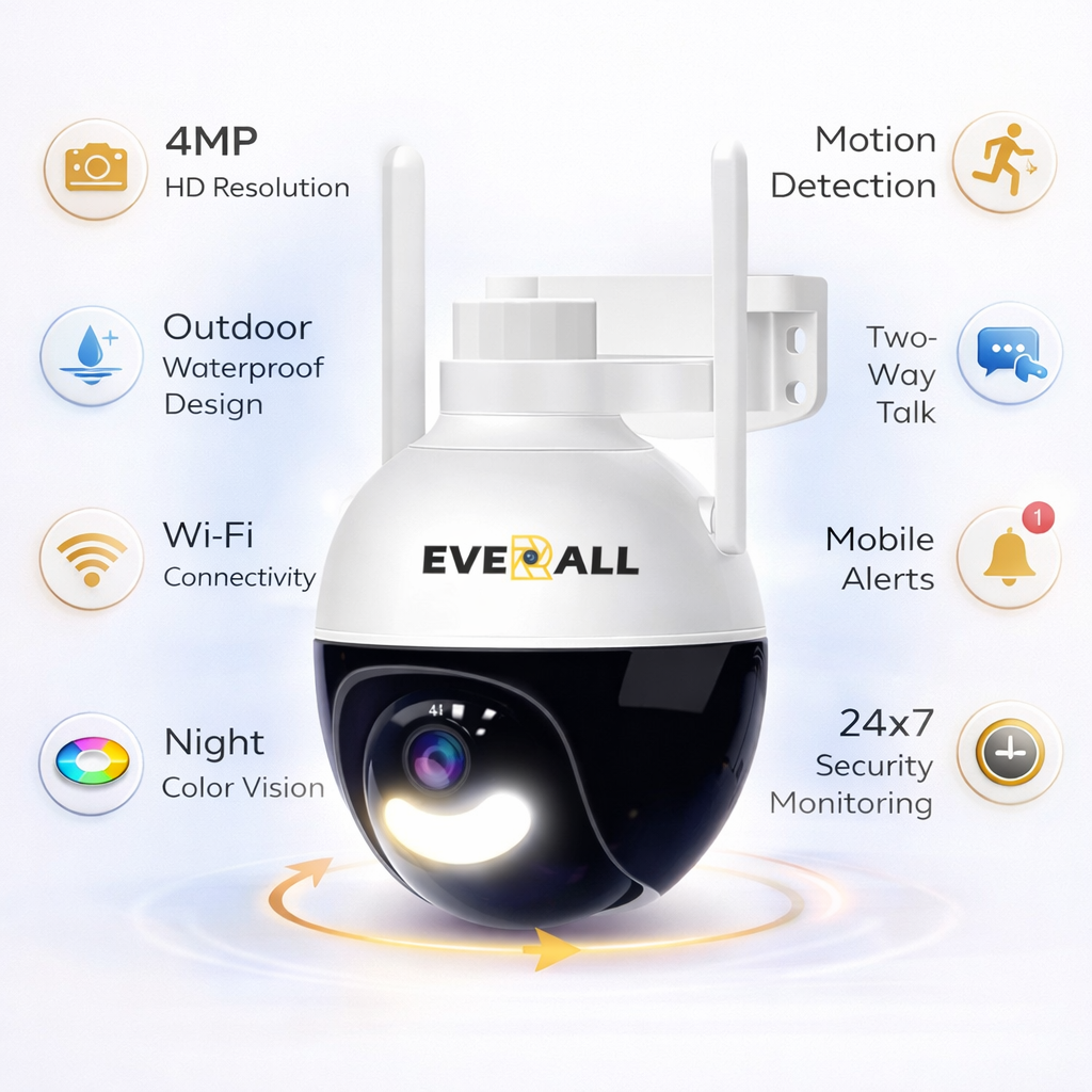 Secure your surroundings with the Everall 4MP Outdoor WiFi CCTV Camera, specially designed for outdoor surveillance. Built with a durable and weather-resistant body, this camera delivers reliable performance in all conditions.