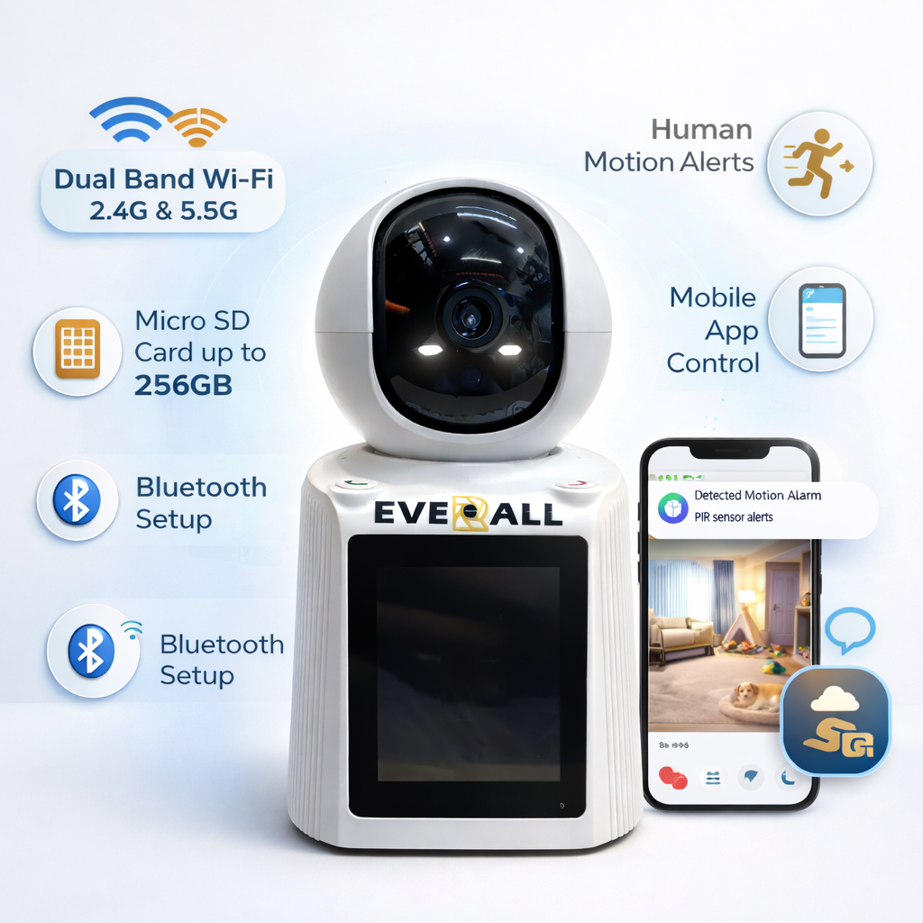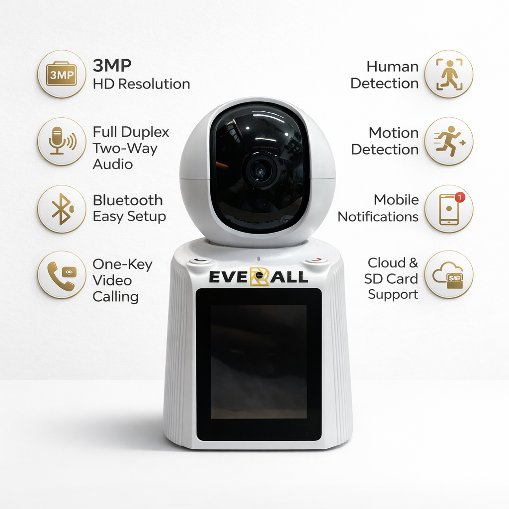 Stay connected and secure with the Everall 4MP Video Calling CCTV Camera, a smart indoor security solution that goes beyond surveillance. This advanced camera not only monitors your space but also allows real-time video calling, making it perfect for families, kids, and elderly care.