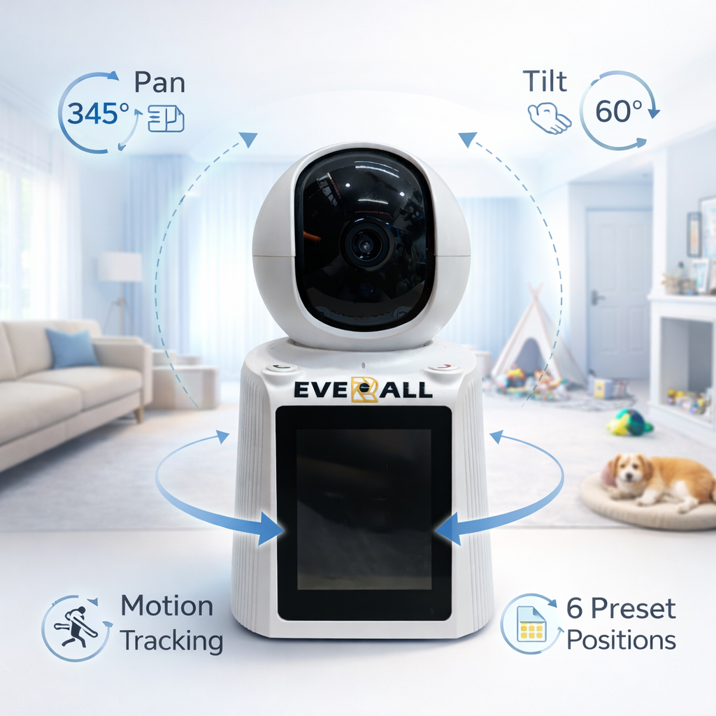 🔄 360° Rotation (Pan & Tilt) – Full room coverage
