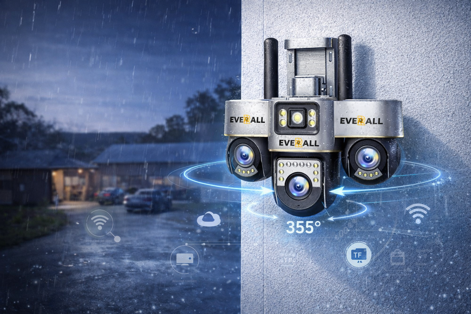 🔄 Motorised 360° Rotation – Full outdoor monitoring