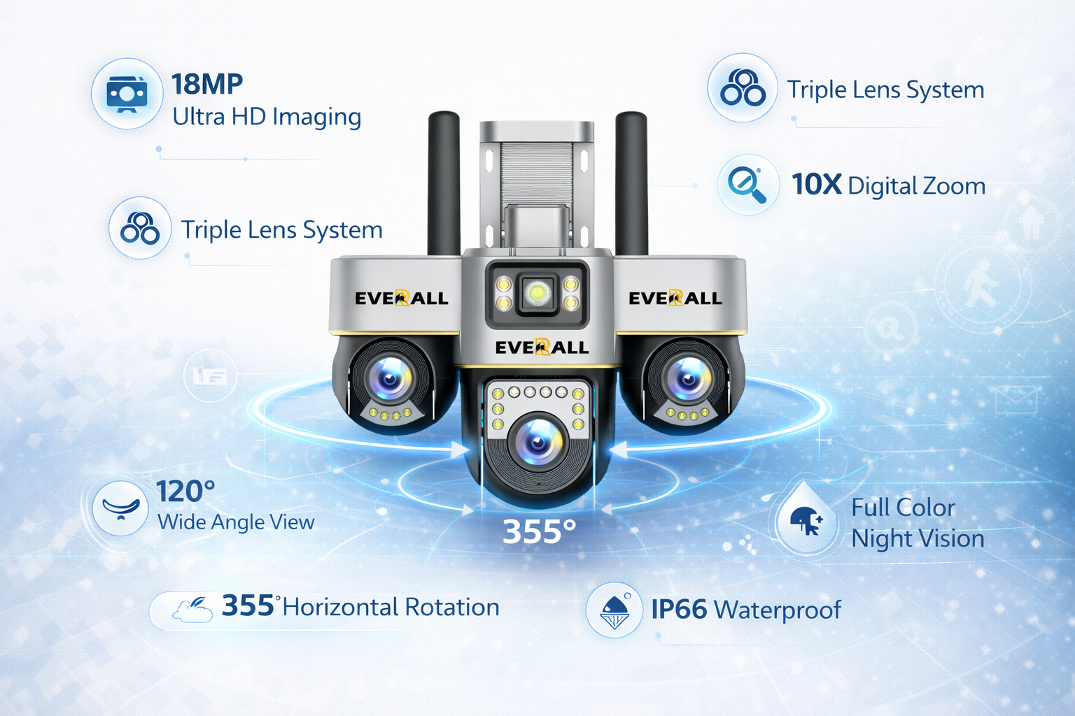 Introducing the Everall 6MP Triple Lens Motorised CCTV Camera, a powerful and advanced outdoor security solution designed for maximum protection. With its triple lens system and 6MP ultra HD clarity, this camera delivers unmatched video quality and wider coverage.