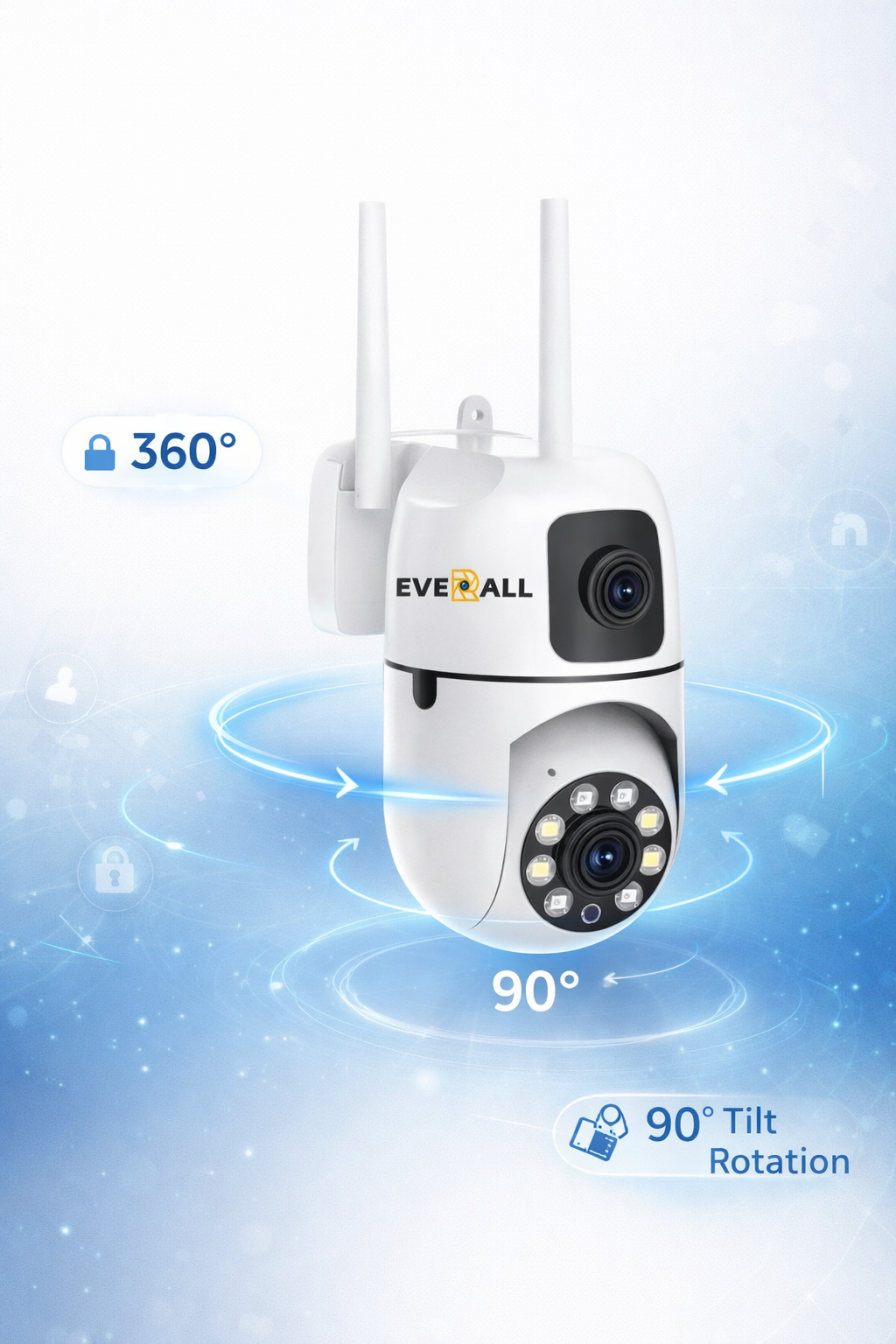 Everall Dual Lens 4MP Wi-Fi CCTV Camera is a powerful indoor security solution designed for homes, shops and offices.
