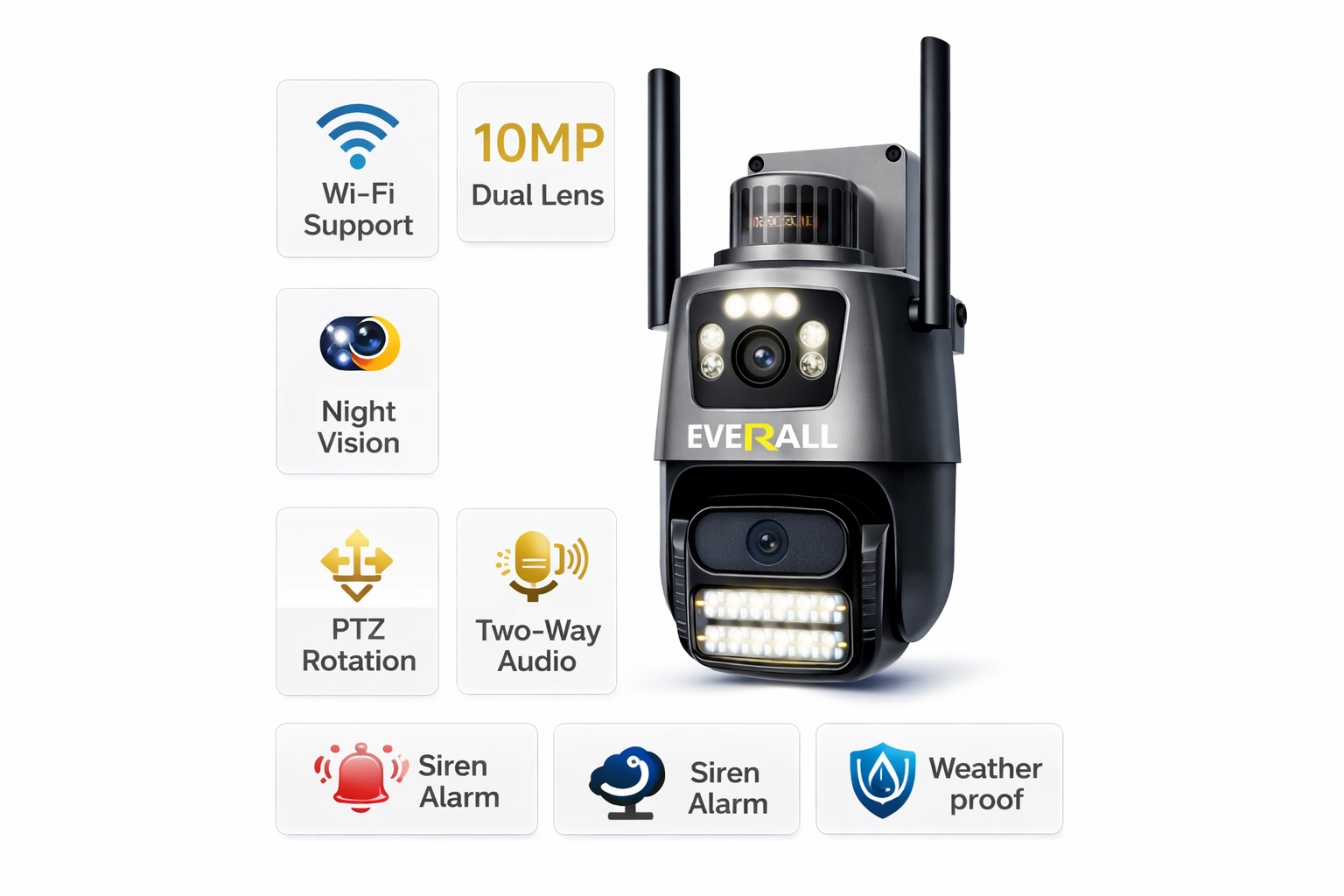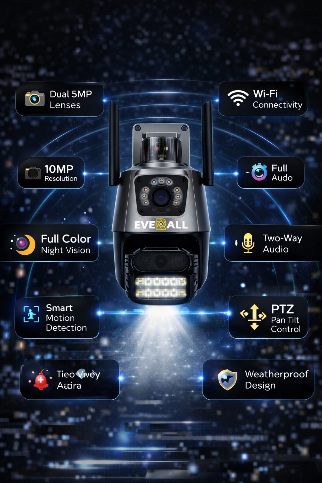 Upgrade to advanced security with the Everall Titanic 5MP Dual Lens CCTV Camera, designed for powerful outdoor surveillance. Built with a strong and durable body, this camera delivers high performance in all weather conditions.