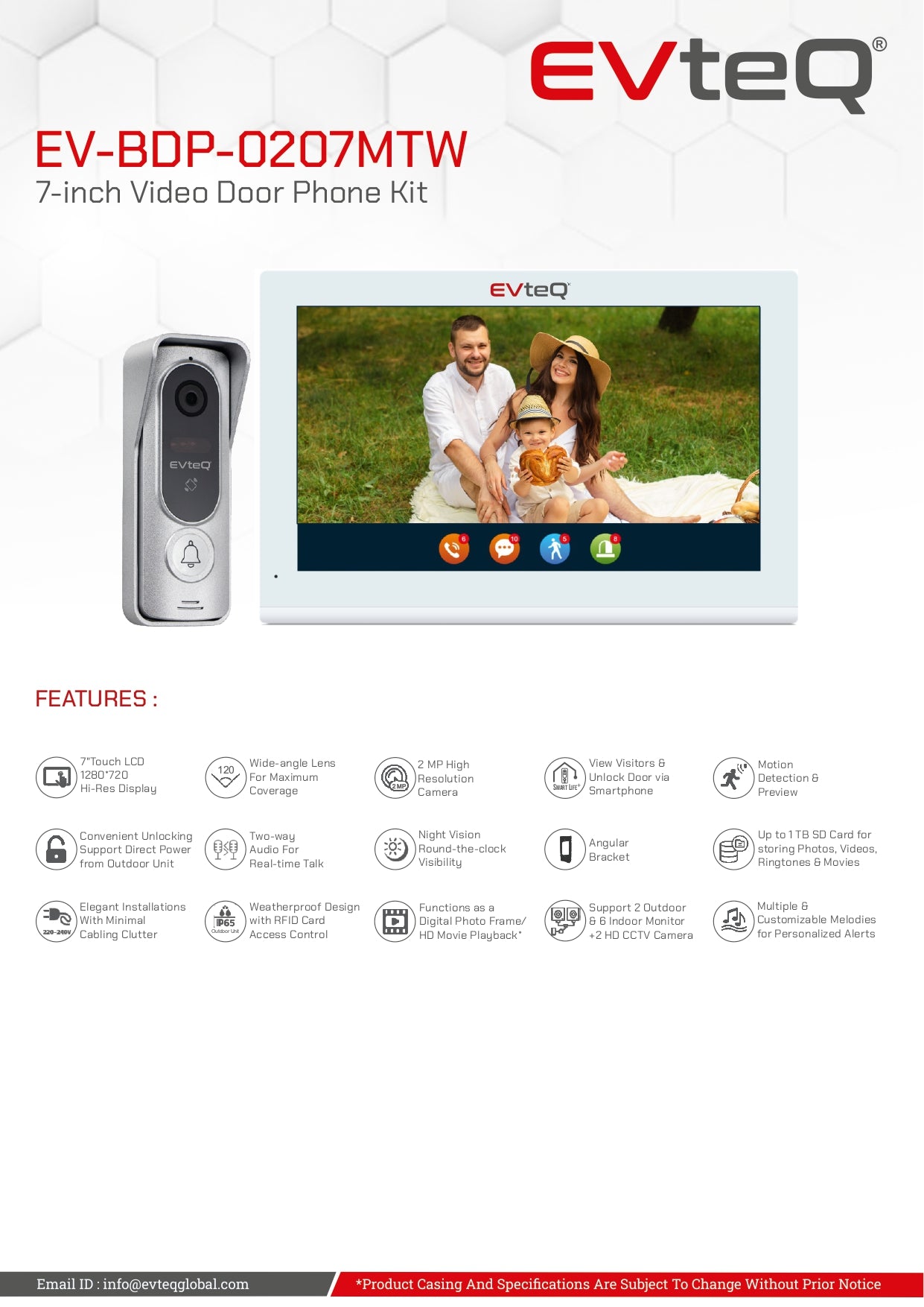 7″ Video Door Phone Kit With Memory & SD Card ( EV-BDP-0207MTW )